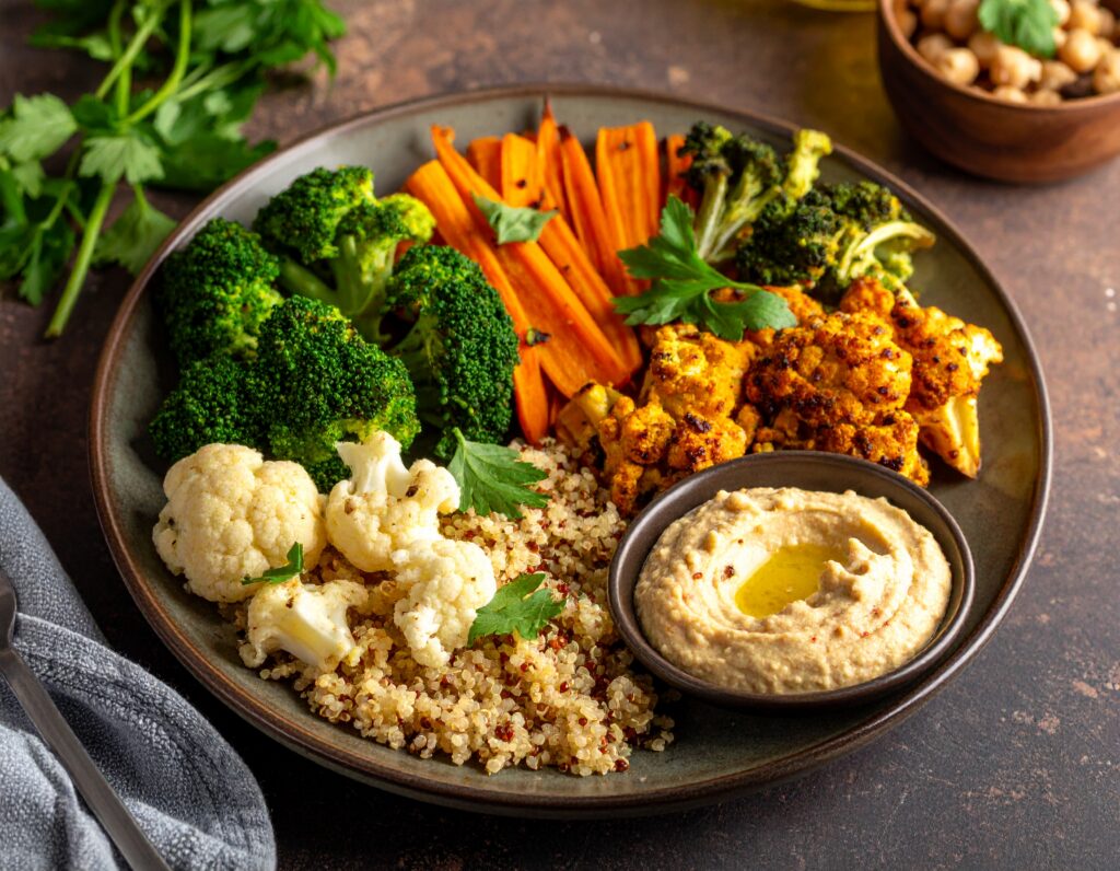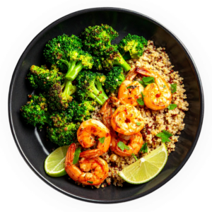 Dinner: Grilled shrimp with quinoa and roasted broccoli